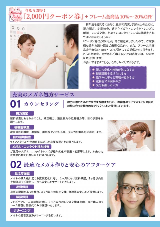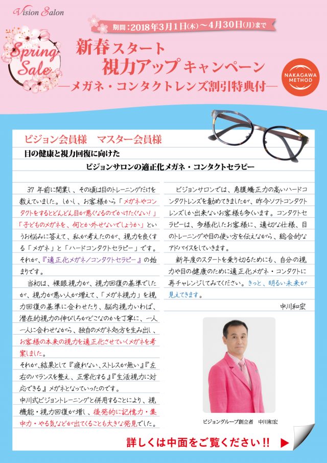 新春スタート視力アップキャンペーン (適正化メガネ・コンタクトレンズ割引特典付)